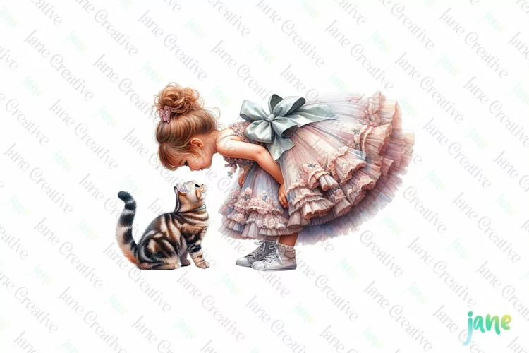 Art Digital Illustrations Instant Download Digital Download Digital Design Digital Prints Cute Design Sublimation Design Little Girl With Cat