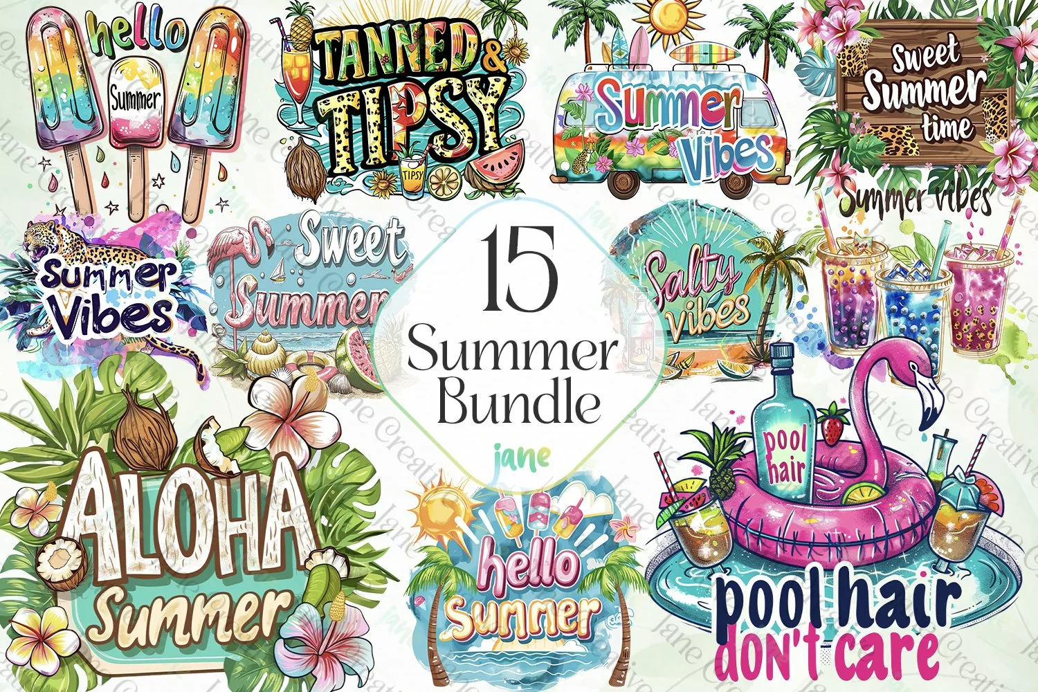 T-shirt Canvas Digital Illustrations Instant Download Paintings Watercolor Art Mugs Sublimation Design Summer Bundle Sublimation Clipart