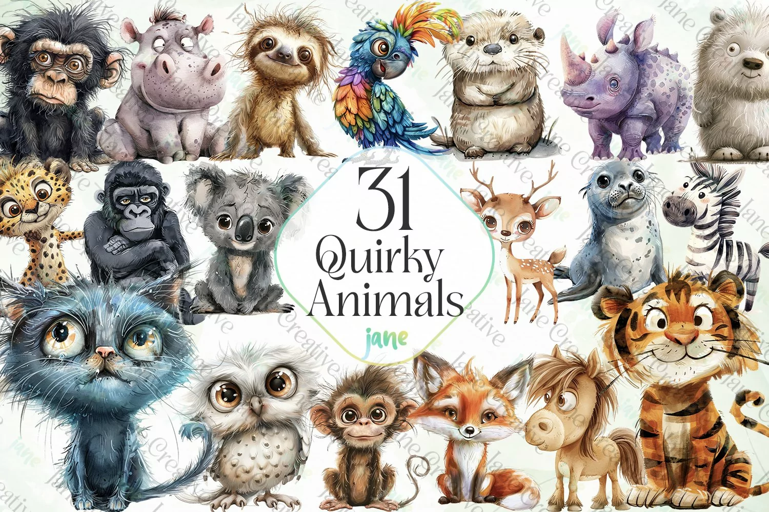 Quirky Animals Sublimation Clipart