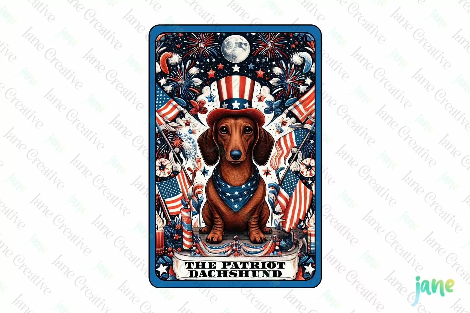 Art Digital Illustrations Instant Download Digital Download Digital Design Digital Prints Cute Design Sublimation Design 4th Of July Dog Card