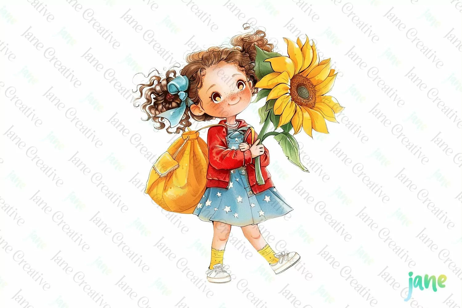T-shirt Canvas Digital Illustrations Instant Download Paintings Watercolor Art Mugs Sublimation Design Joyful Young Girl Sublimation Clipart