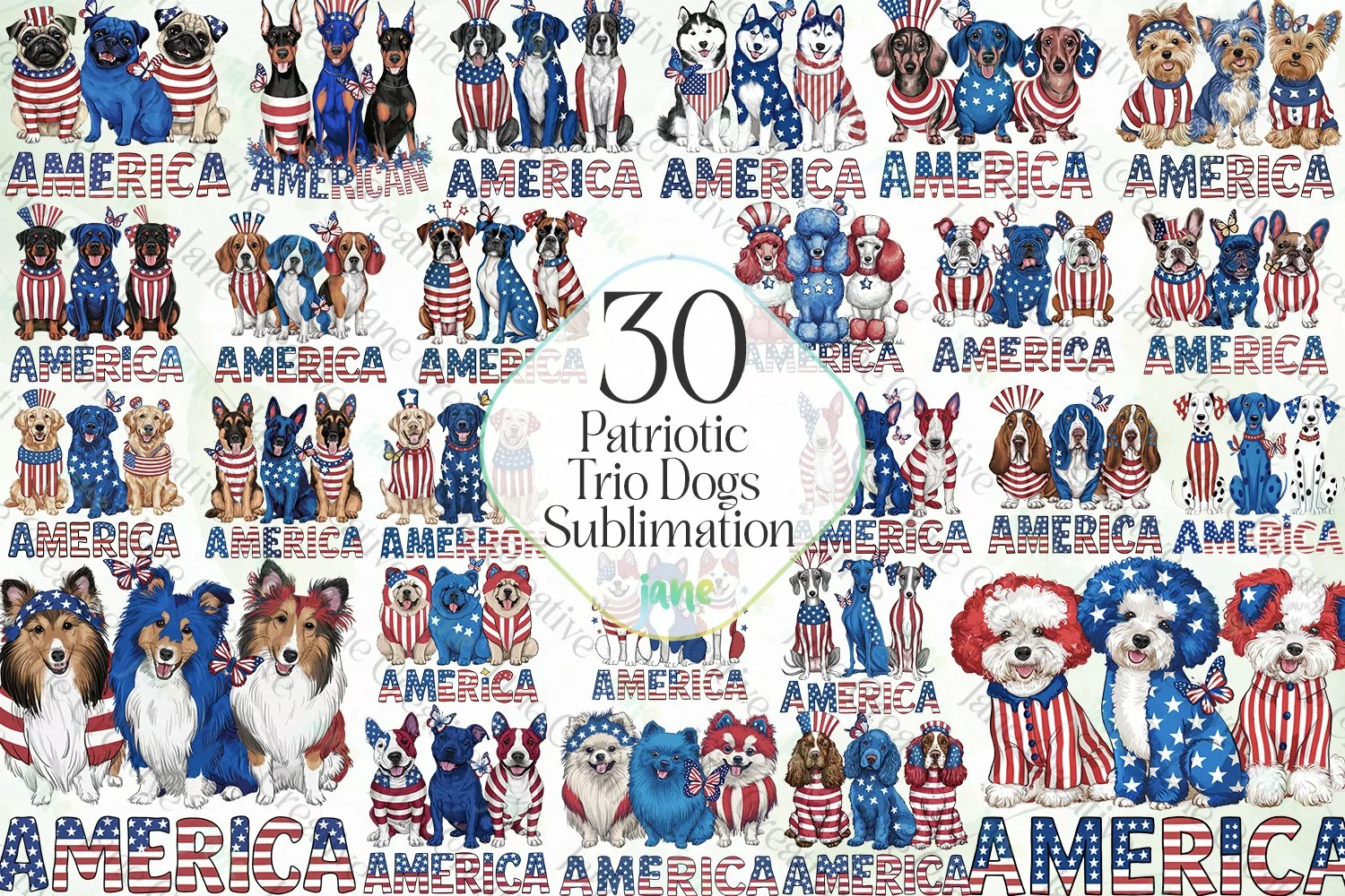 Similar Design Products to Patriotic Trio Dogs Sublimation Clipart