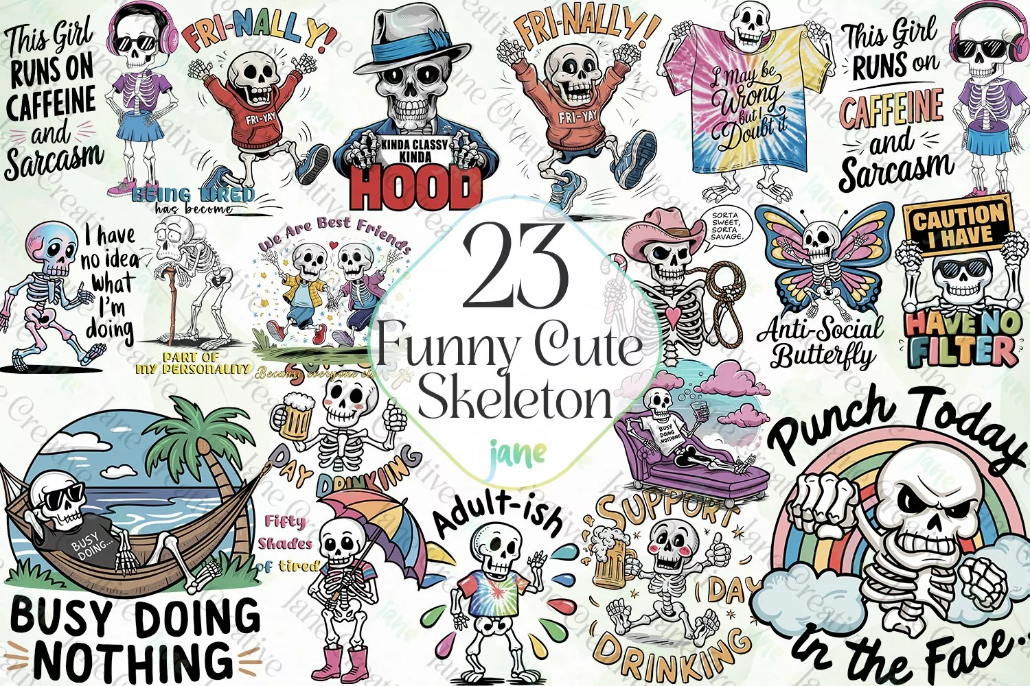 Funny Cute Skeleton Sublimation Clipart example image 1