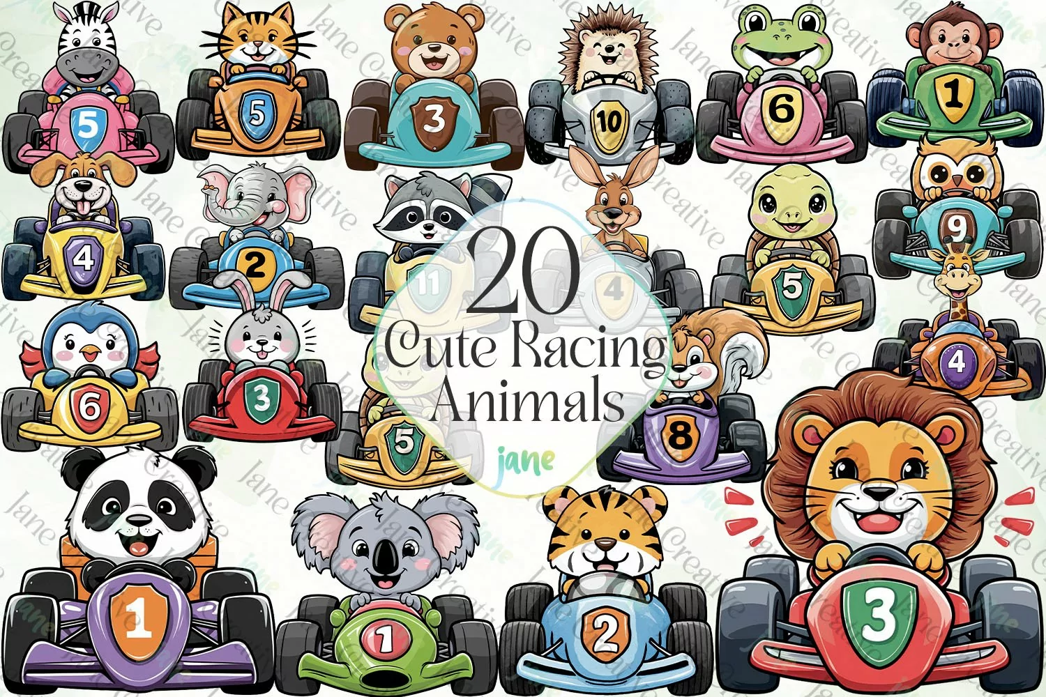 Cute Racing Animals Sublimation Bundle