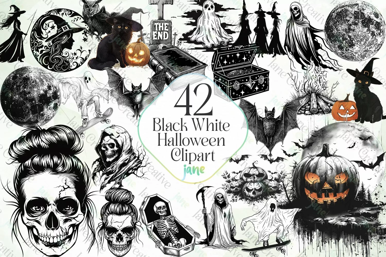 T-shirt Canvas Digital Illustrations Instant Download Paintings Watercolor Art Mugs Sublimation Design Black White Halloween Clipart