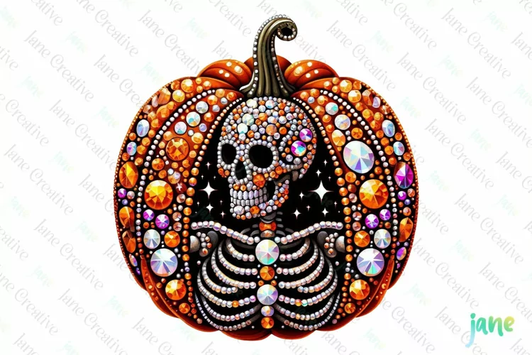 Rhinestone Skeleton Pumpkin Halloween Clipart