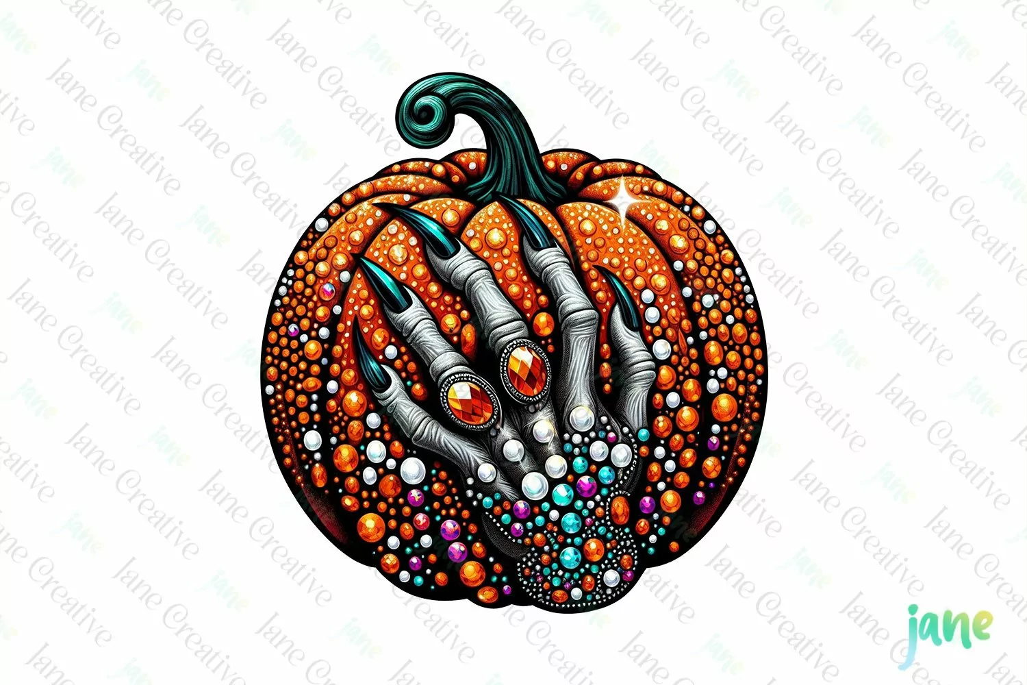 Rhinestone Witch Hand Pumpkin Halloween Clipart example image 1