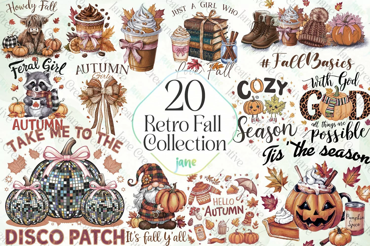 T-shirt Canvas Digital Illustrations Instant Download Paintings Watercolor Art Mugs Sublimation Design Retro Fall Collection Sublimation