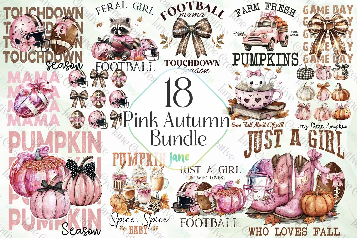 Pink Autumn Bundle Sublimation Clipart