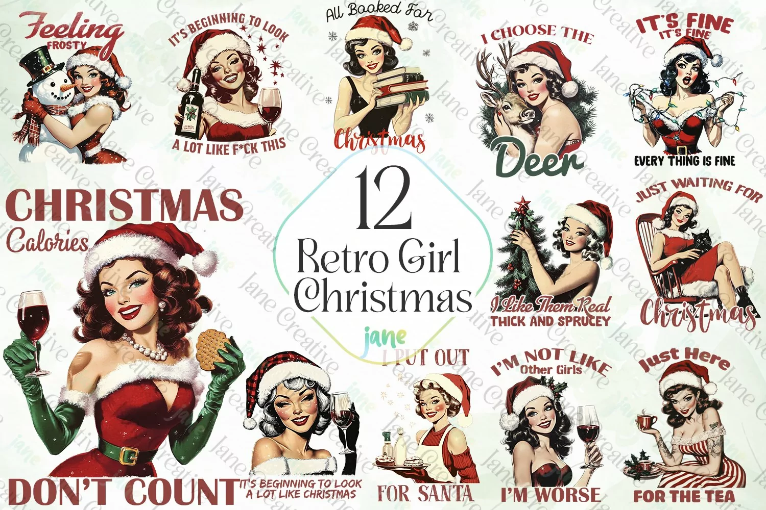 Watercolor Digital Instant Download Digital Design Sublimation Digital Prints Cute Design Sublimation Design Illustrations Art Retro Christmas Girls Sublimation