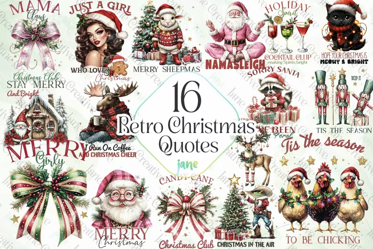 Retro Christmas Quotes Sublimation example image 1