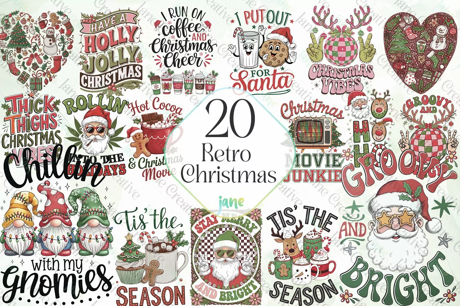 Retro Christmas Sublimation Clipart