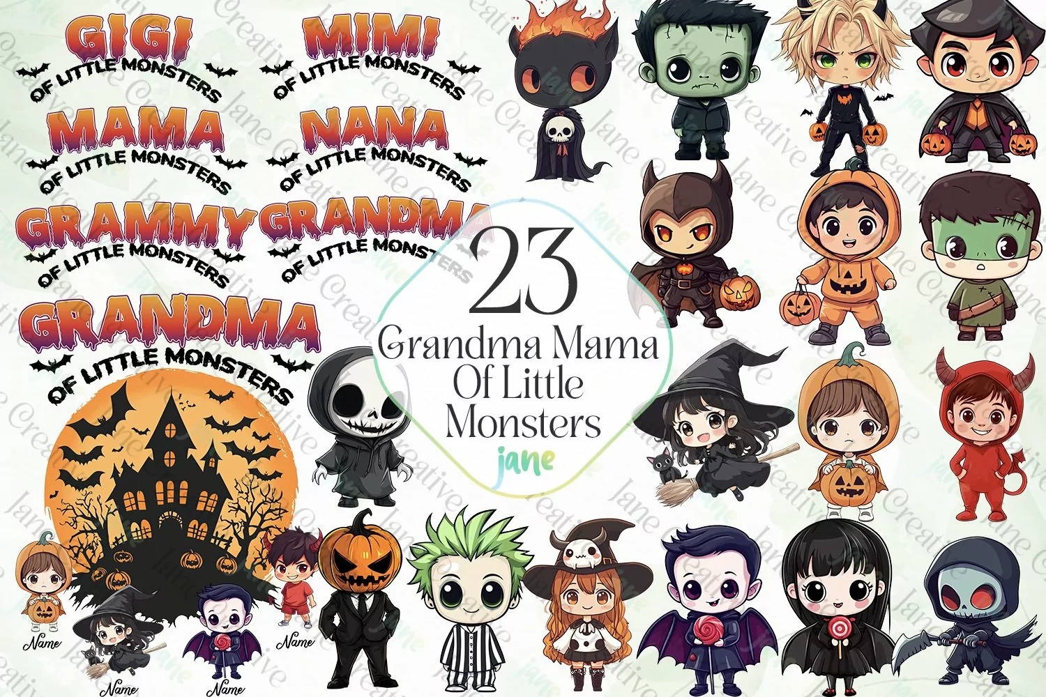 Watercolor Digital Instant Download Digital Design Sublimation Digital Prints Cute Design Sublimation Design Illustrations Art Grandma Mama Of Little Monsters Clipart