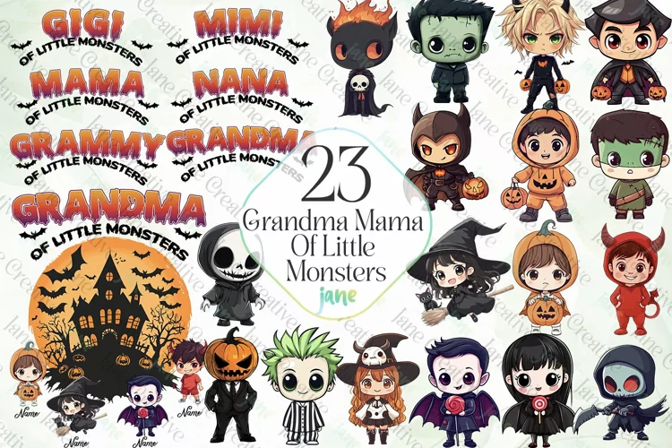 Grandma Mama Of Little Monsters Clipart example image 1