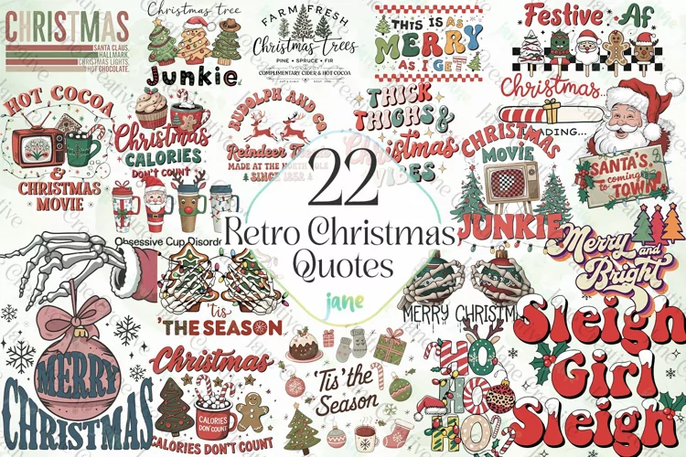 Retro Christmas Quotes Sublimation example image 1