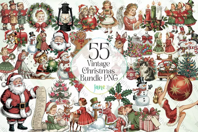 Vintage Christmas Bundle PNG Sublimation example image 1