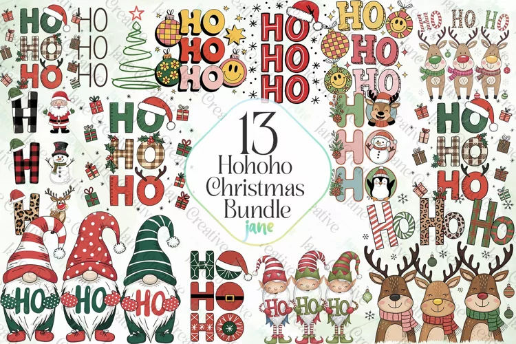 Watercolor Digital Instant Download Digital Design Sublimation Digital Prints Cute Design Sublimation Design Illustrations Art Hohoho Christmas Bundle Sublimation