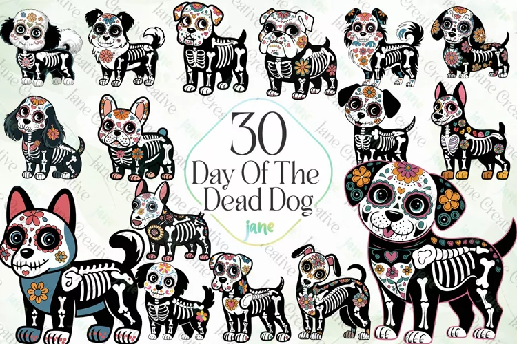 Day Of The Dead Dog Sublimation Clipart example image 1
