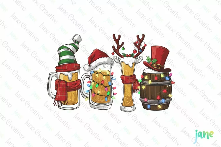 Watercolor Digital Instant Download Digital Design Sublimation Digital Prints Cute Design Sublimation Design Illustrations Art Christmas Beers Sublimation Clipart