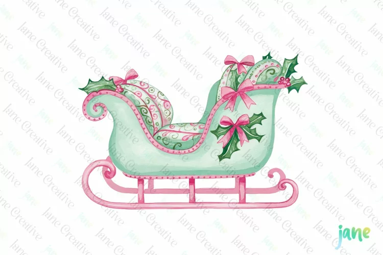 Watercolor Instant Download Digital Design Sublimation Digital Prints Cute Design Sublimation Design Illustrations Art Pastel Christmas Sleigh Clipart Pastel Sleigh Clipart