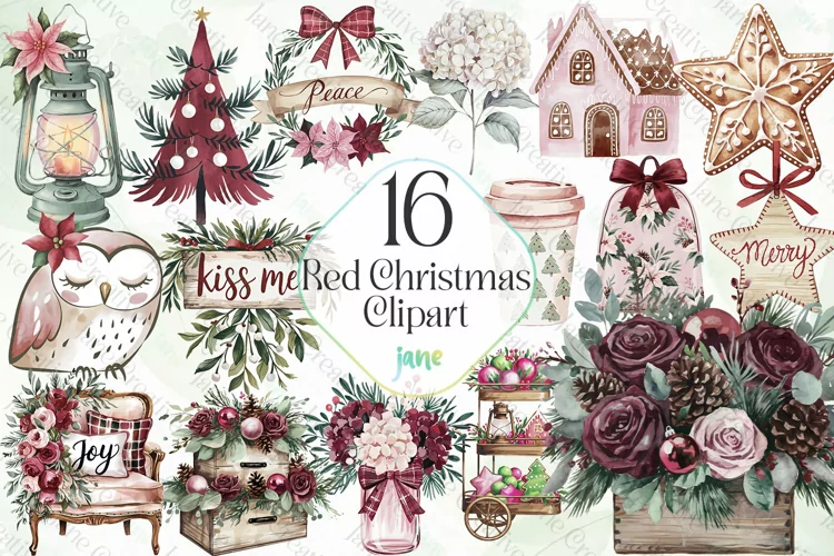 Red Christmas Sublimation Clipart example image 1