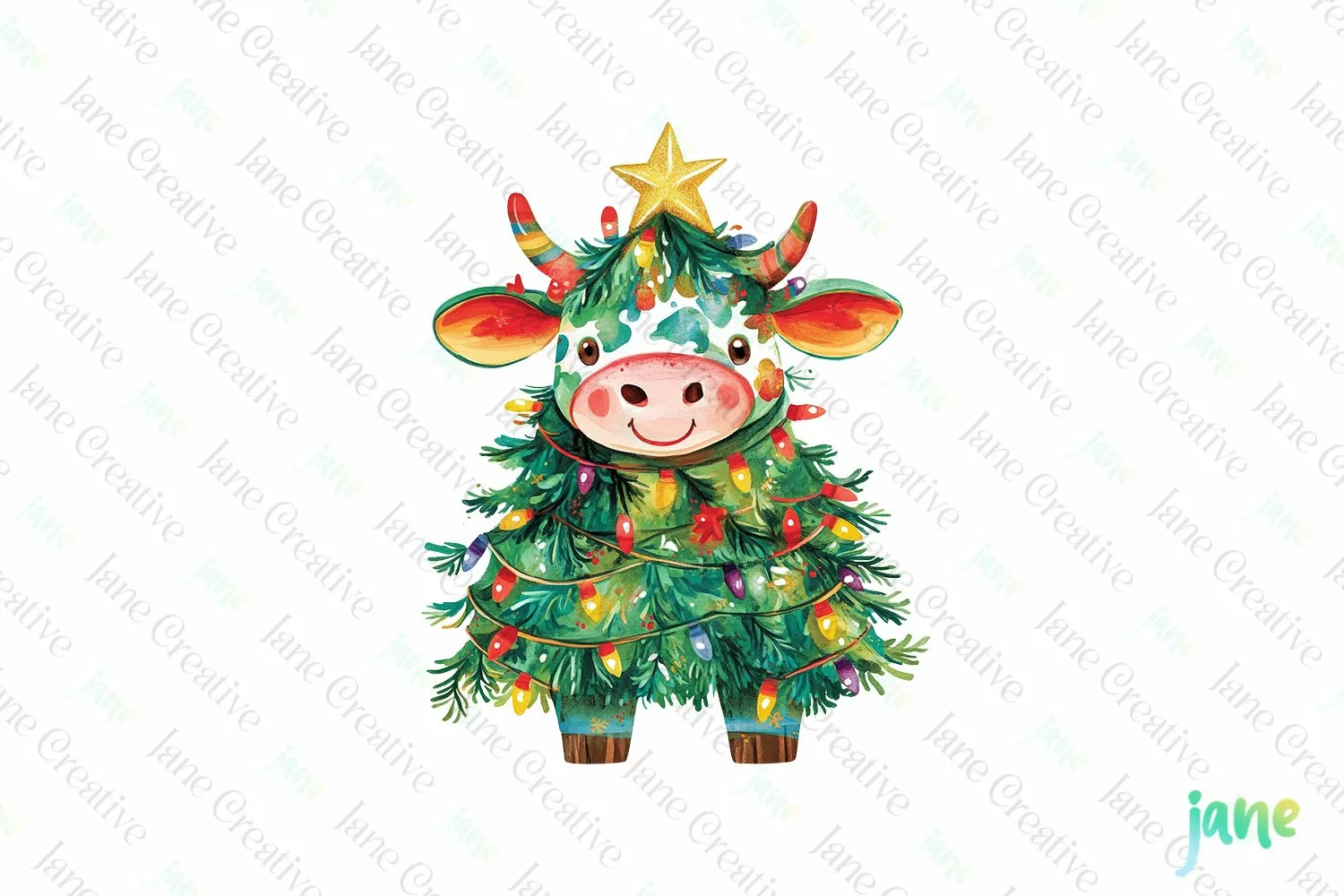 Cow Wrapped In Christmas Tree Clipart example image 1