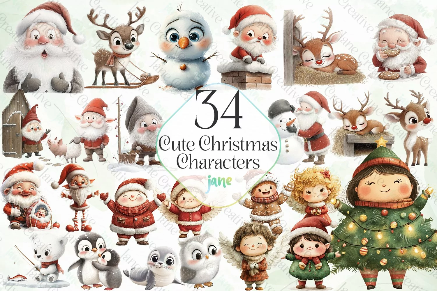 Art Digital Illustrations Instant Download Digital Download Digital Design Digital Prints Cute Design Cute Christmas Characters Sublimation Design