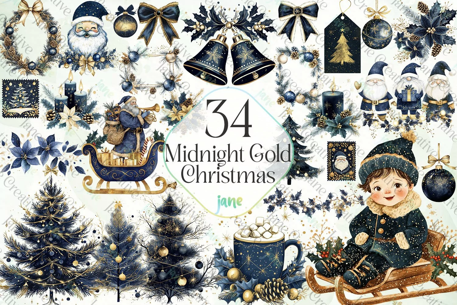 Art Illustrations Instant Download Digital Download Digital Design Digital Prints Cute Design Sublimation Design Blue Gold Christmas Midnight Gold Christmas