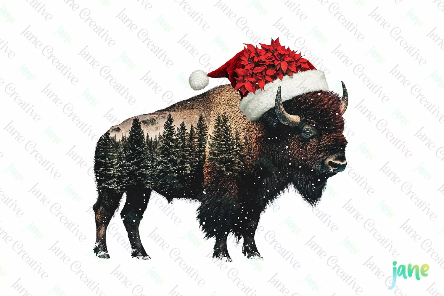 Similar Design Products to Double Exposure Christmas American Bison Clipart