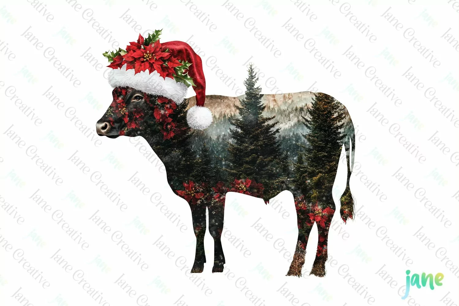 Similar Design Products to Double Exposure Christmas Cow Clipart
