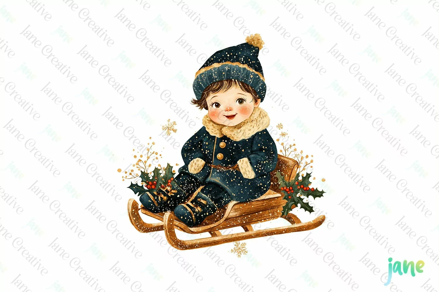Blue And Gold Christmas Boy Clipart example image 1