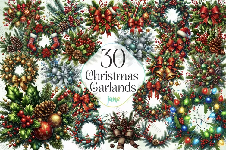Christmas Garlands Sublimation Clipart