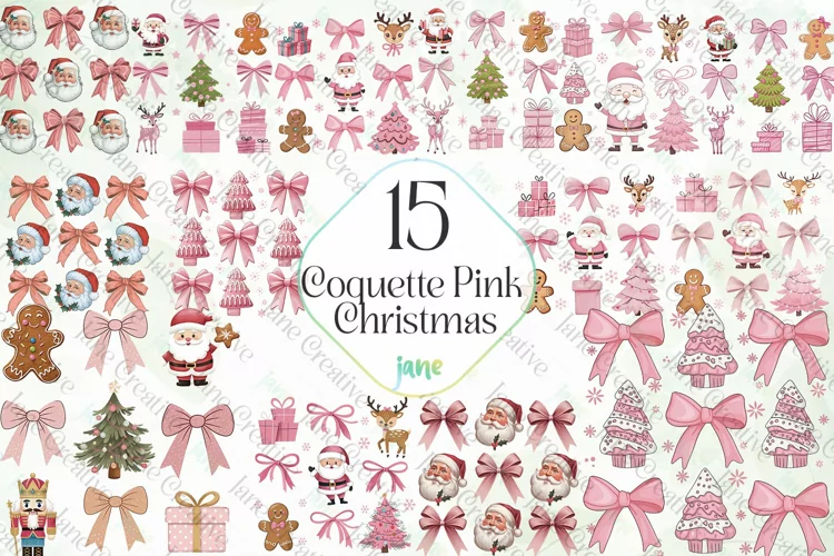 Watercolor Digital Instant Download Digital Design Sublimation Digital Prints Cute Design Sublimation Design Illustrations Art Coquette Pink Christmas Sublimation