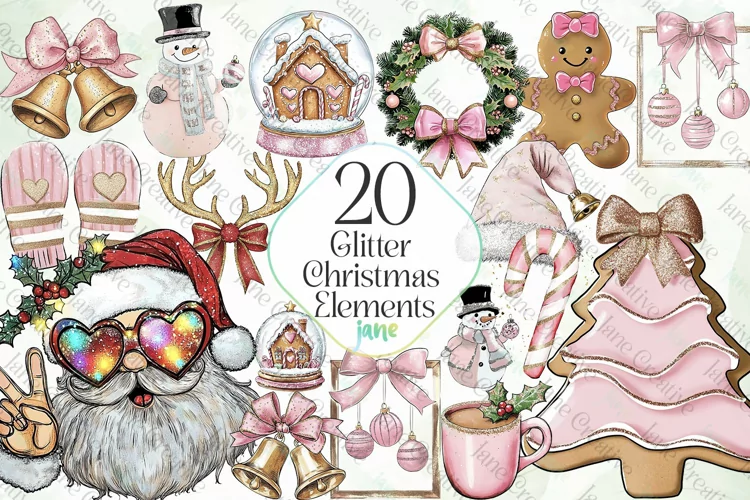 Watercolor Digital Instant Download Digital Design Sublimation Digital Prints Cute Design Sublimation Design Illustrations Art Glitter Christmas Elements Sublimation