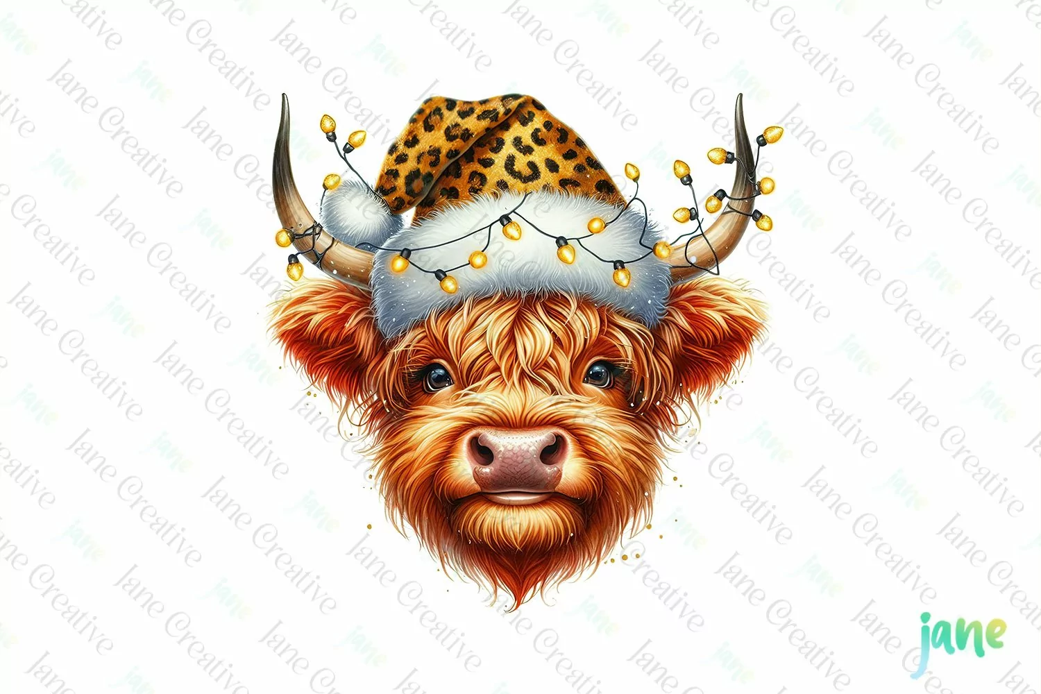 Similar Design Products to Glitter Leopard Christmas Highland Cow Clipart