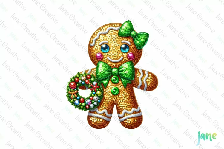 Sparkling Christmas Gingerbread Man Character Clipart example image 1