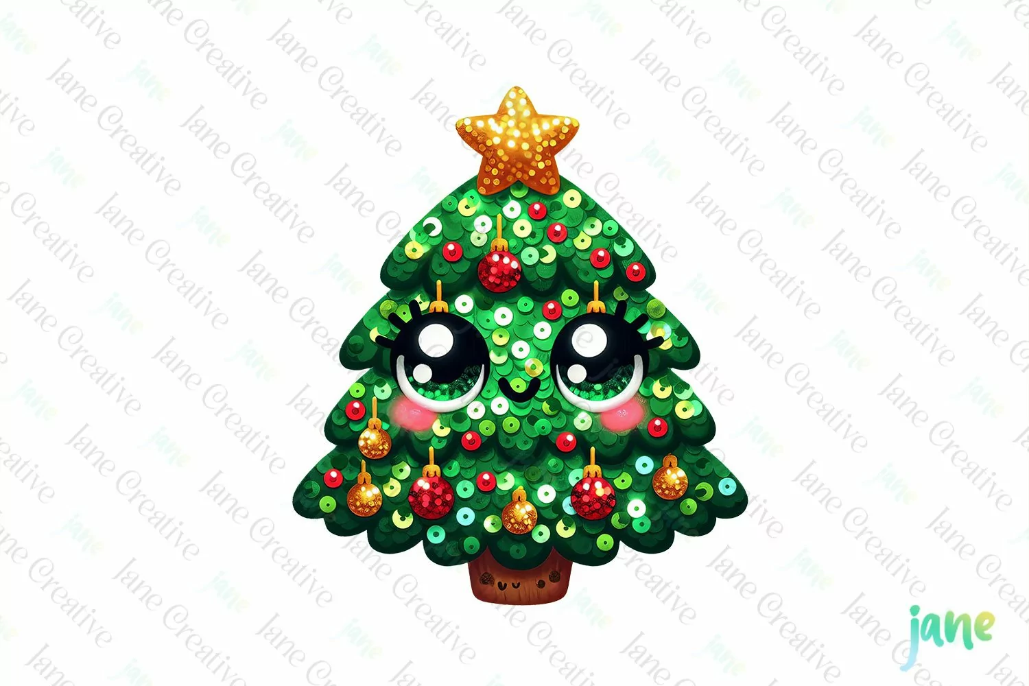 Sparkling Christmas Christmas Tree Character Clipart example image 1
