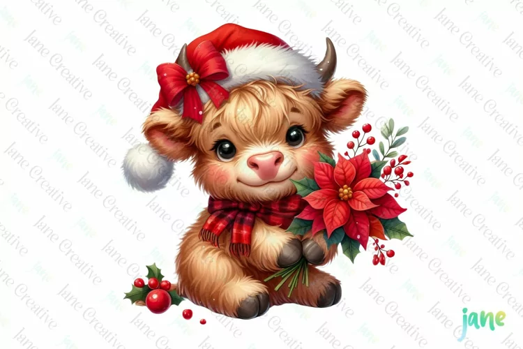 Similar Design Products to Christmas Highland Cow And Poinsettia Clipart