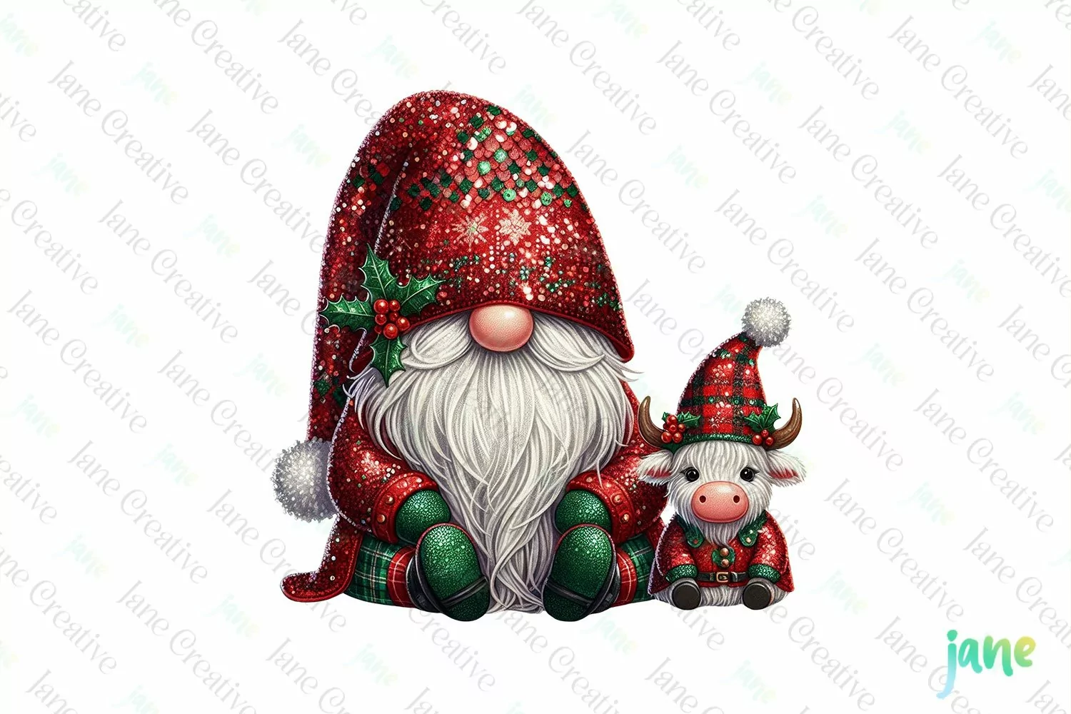 Sparkling Christmas Gnome And Highland Cow Clipart example image 1