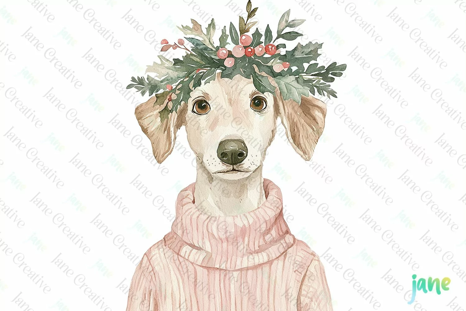 Dog Pink Jumper Animals Christmas Clipart example image 1