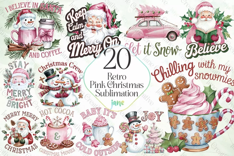 Art Digital Illustrations Instant Download Digital Download Digital Design Digital Prints Cute Design Sublimation Design Retro Pink Christmas Bundle
