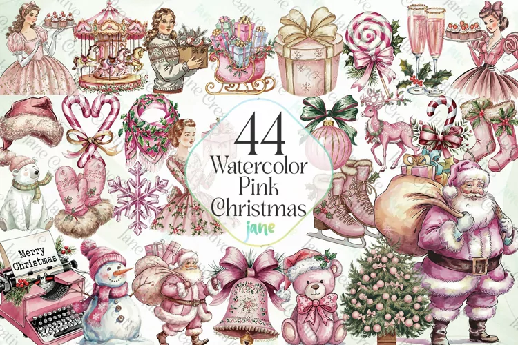Watercolor Digital Instant Download Digital Design Sublimation Digital Prints Cute Design Sublimation Design Illustrations Art Watercolor Pink Christmas Sublimation