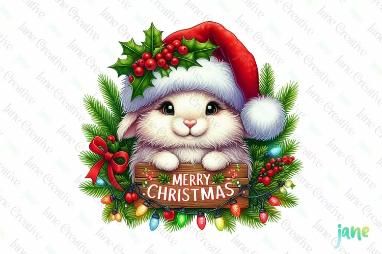 Rabbit Animals Holding Merry Christmas Sign example image 1