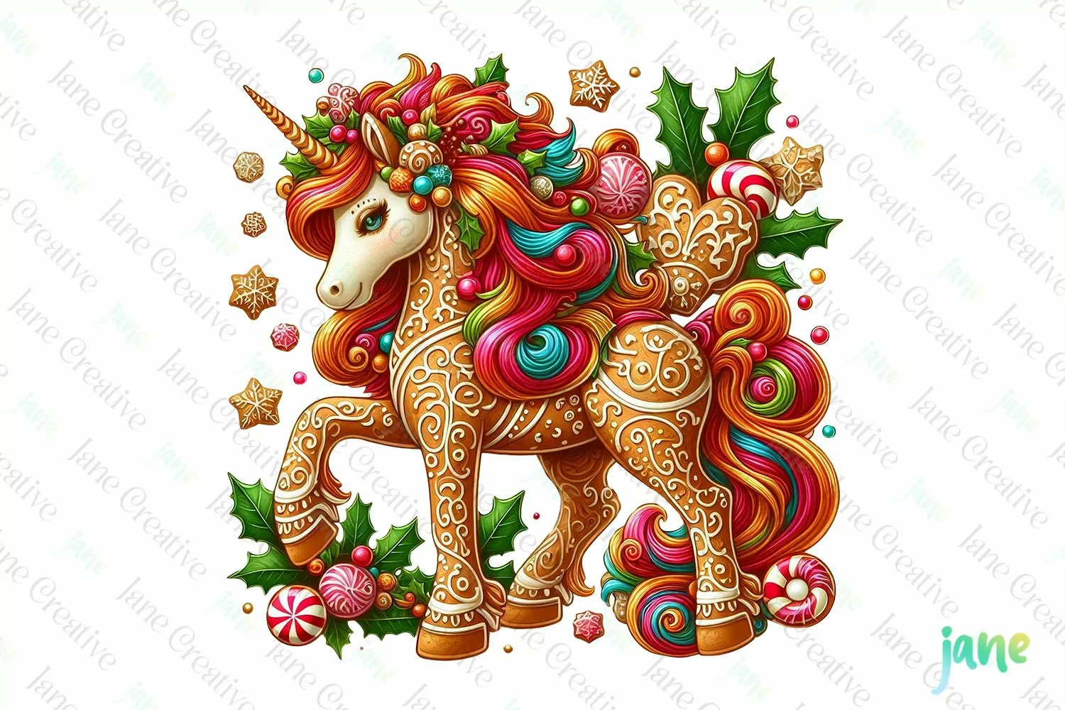 Christmas Unicorn Clipart Sublimation example image 1