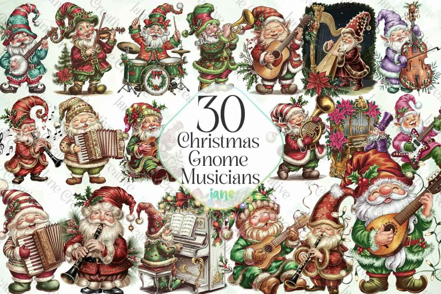 Watercolor Digital Instant Download Digital Design Sublimation Digital Prints Cute Design Sublimation Design Illustrations Art Christmas Gnome Musicians Sublimation