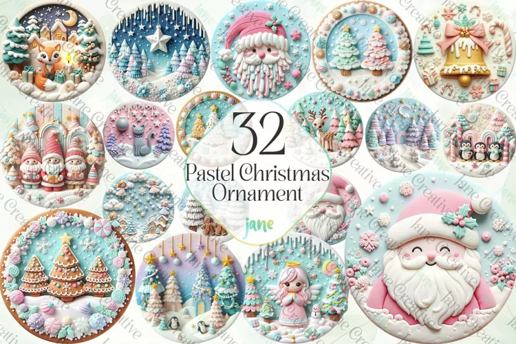 Pastel Christmas Ornament Sublimation Bundle