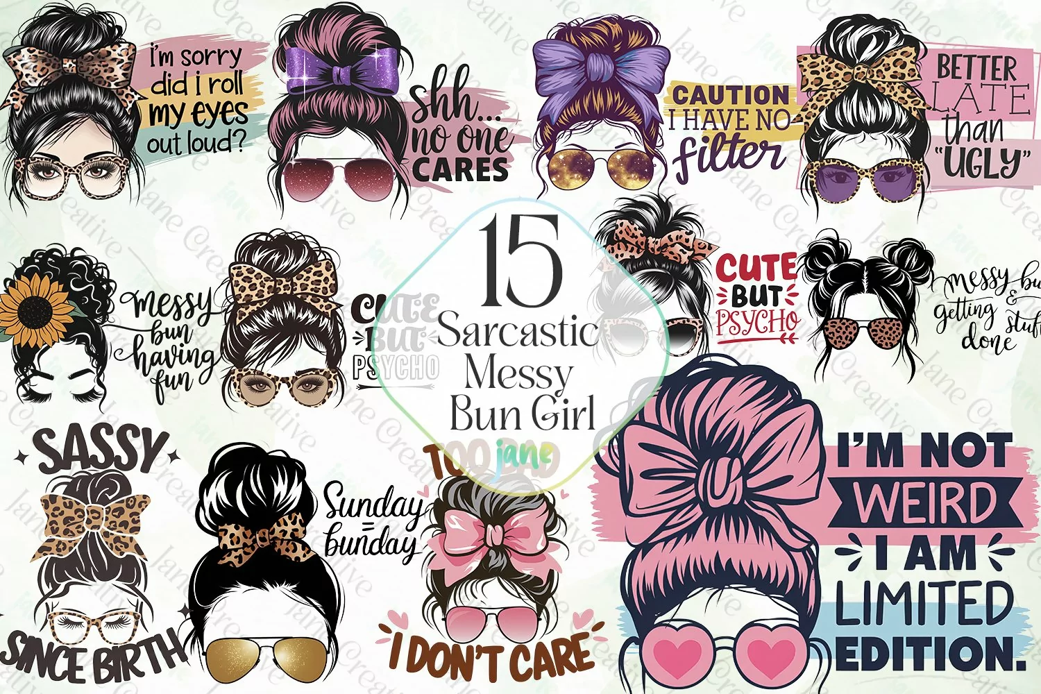 Watercolor Digital Instant Download Digital Design Sublimation Digital Prints Cute Design Sublimation Design Illustrations Art Sarcastic Messy Bun Girl Sublimation