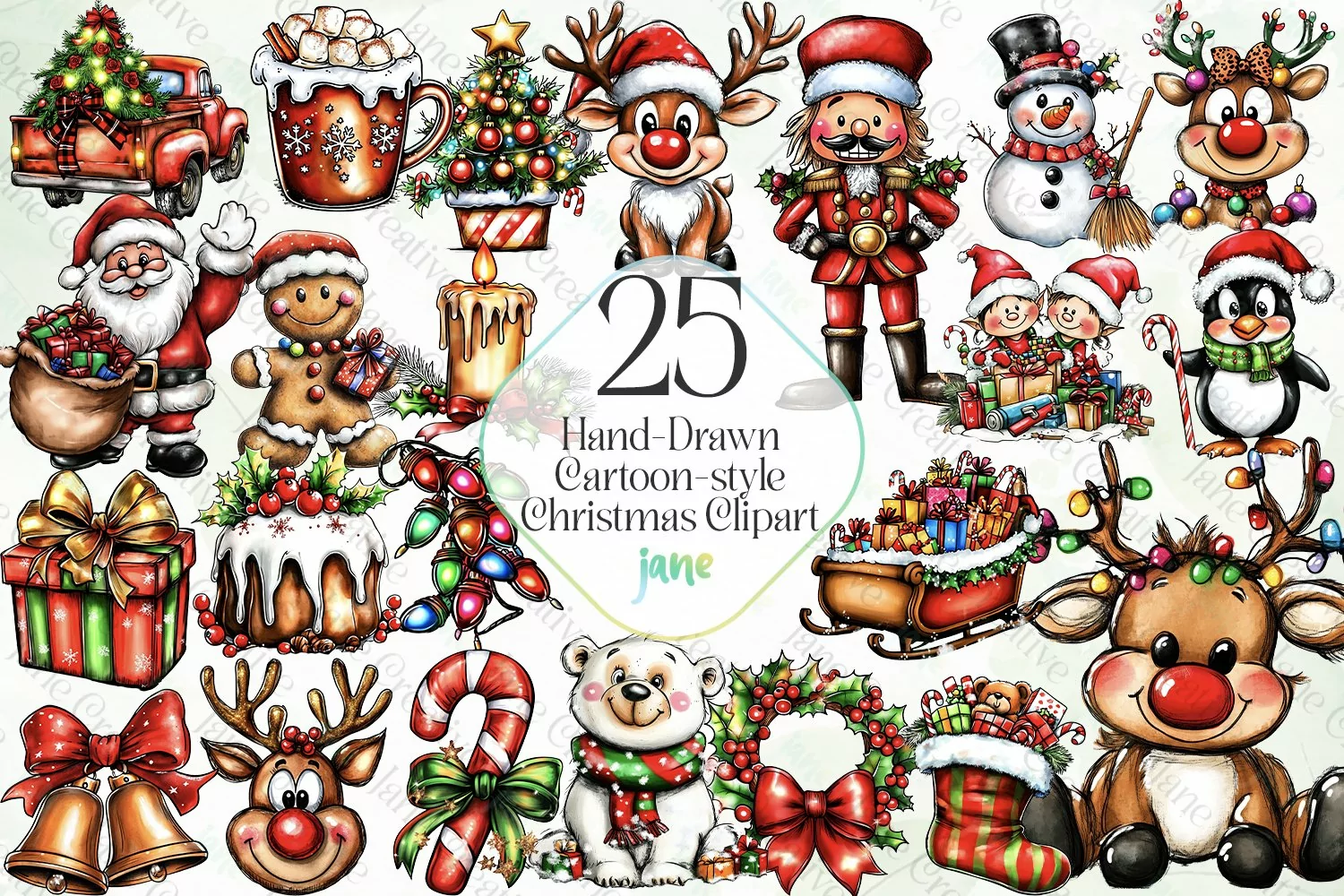 Art Illustrations Instant Download Digital Download Digital Design Digital Prints Cute Design Sublimation Design Cartoon Christmas Clipart Hand-drawn Cartoon-style Christmas Clipart