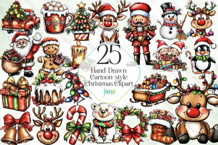 Hand-drawn Cartoon-style Christmas Clipart