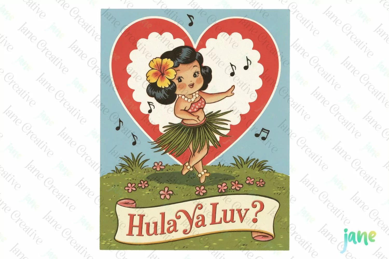 Hula Ya Luv Valentine Vintage PNG
